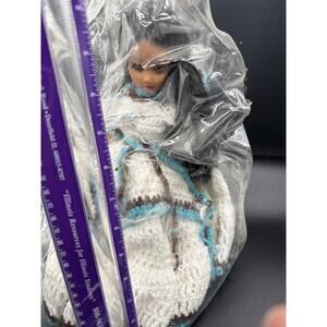 Discover a charming piece of history with this vintage Native American Indian doll crochet dress. This beautifully crafted garment is designed for 15-inch and 16-inch Carlson Dolls, bringing an authentic touch to your beloved vintage collection. The intricate crochet work showcases traditional patterns, highlighting the artistry and attention to detail that went into its creation. While in used condition, this dress retains its inherent beauty and character, ready to adorn a special doll. This unique dress is a perfect addition for collectors of vintage Native American Indian dolls or Carlson Dolls, offering a rare opportunity to enhance an existing display or restore a cherished doll to its former glory. The hand-crocheted design is a testament to the skill of its maker, featuring delicate stitching that embodies a timeless aesthetic. Its vibrant presence will undoubtedly become a focal point in any collection of vintage ethnic dolls. Capture the essence of heritage with this exquisite doll dress. It provides a wonderful opportunity to appreciate the craftsmanship of a bygone era and adds significant value to any collection of vintage Native American inspired items. Don't miss the chance to own this distinctive and culturally rich accessory for your 15-inch or 16-inch Carlson doll.199