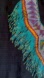 •awesome Native American/Indigenous beaded necklace design in shades of turquoise, purple, white, red, and yellow with glittery accents