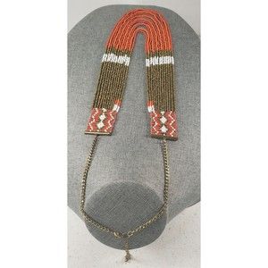 Vintage native american multi strand necklace. 13 strands of orange, white and bronze seed beads. Necklace is 12 inches long with adjustable chain up to 17 inches.