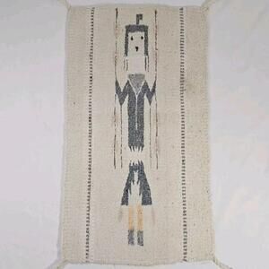 Vintage Native American Navajo Handwoven Wool Yei Tapestry Corn Maiden 27"x15"