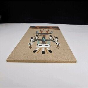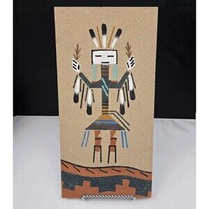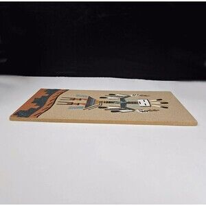 Vintage Native American Sand Painting Navajo Art Yei-Bei-Chai Dancer Wood Panel 12"x 6"