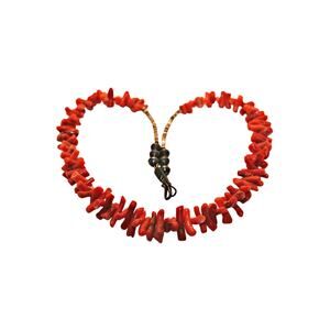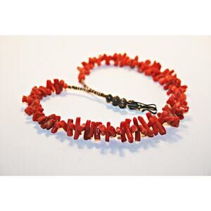 Vintage Native American Red Coral and Sterling Silver Hogan Bead Necklace