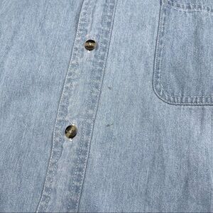 Vintage Native American Shirt Chambray Button Tribal Indigenous Blue Summer
