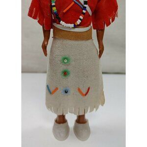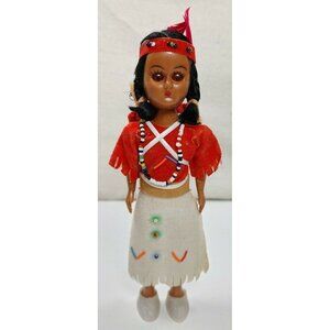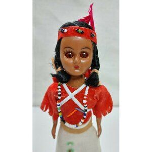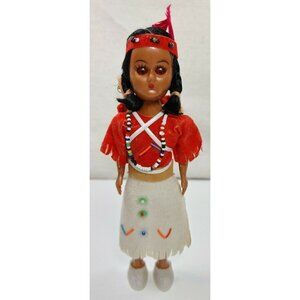 Vintage Native American Souvenir Red White Sleepy Eyes Baby Papoose Indian Doll