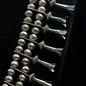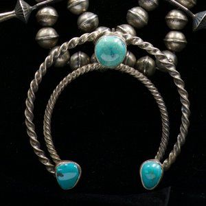 Vintage Native American Sterling Silver, Turquoise Squash Blossom, Unsig…