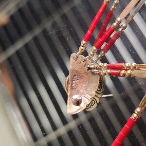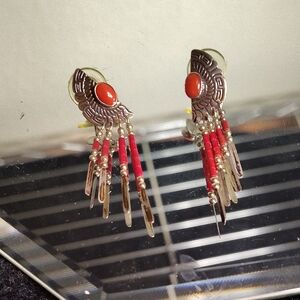 Vintage Native American Sterling Silver and Red Coral Dangle Earrings