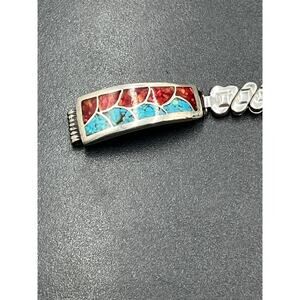 Vintage Native American Sterling Turquoise Coral Expandable Watch Band Bracelet
