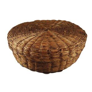 Vintage Native Handwoven Round Sweetgrass Sewing Basket With Lid 7x2.5 Inches