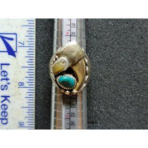 Vintage Native Made Wolf Claw Turquoise Ivory Men's Ring Size 10.5