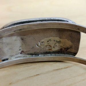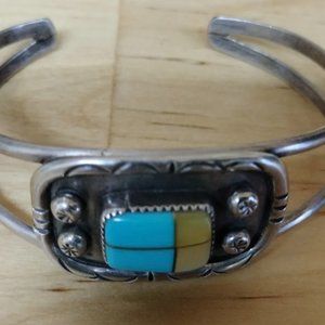 Vintage Native Turquoise & Mother of Pearl Sterling Silver Cuff Bracelet