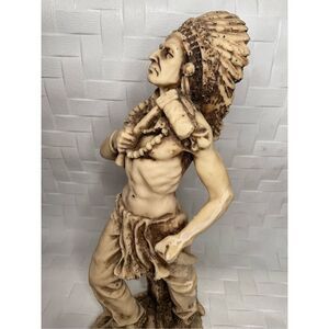 Vintage Native American Indian Warrior Tribal Chief Holding Tomahawk /Axe As is