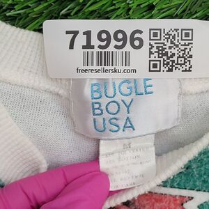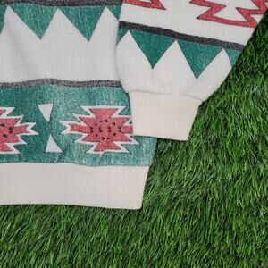 Vintage green and white Aztec sweatshirt womens medium with bold Native-inspired pattern cozy retro layer