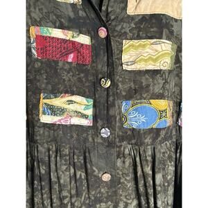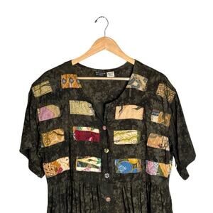 Vintage Nativewear Designs Dress Size Large Patchwork Green Round Neck Maxi