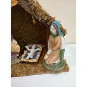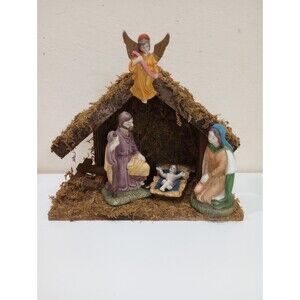 This beautiful vintage nativity scene is sure to bring joy to your holiday collection. Wooden manger and porcelain figures. The intricate details and timeless charm of this piece make it a perfect addition to any home decor. Whether you're a collector or simply looking for a special touch for your holiday display, this nativity scene is sure to impress. Crafted with care, this nativity scene features a classic design that captures the essence of the holiday season. The vintage quality of this piece adds a touch of nostalgia and warmth to your home. Perfect for display on a mantle or as a centerpiece, this nativity scene is a must-have for any holiday enthusiast. Manger is 9.5" by 4.4" by 8".