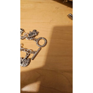 This is a vintage silver charm bracelet featuring various scenes from the nativity. The bracelet is approximately 7 inches in length and has a chain link design. The charms are made of metal and have a silver finish. The bracelet is in very good condition with some minor signs of wear. This piece is high quality. I initially thought it was an unsigned Brighton but I have not been able to find it attributed to anyone.