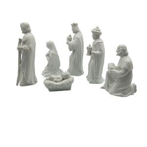 Vintage Nativity of Holy Family and Wise men Set, 6 Pieces in White Bisque