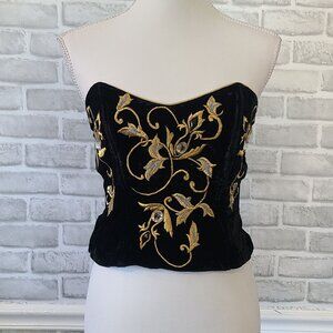 Vintage Natori Neiman Marcus Black Velvet Embroidered Bustier Elegant Whimsigoth