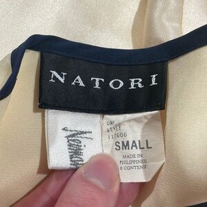 Vintage Natori Nieman Marcus Cream Navy Tunic Pant Pajama Set