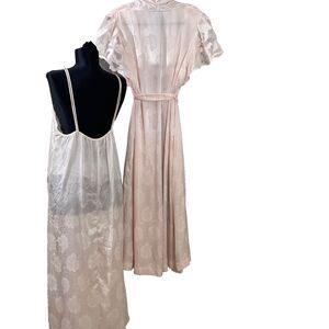 Vintage Natori Peignor Set Nightgown M robe L w belt flutter sleeves *