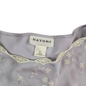 Vintage Natori Two Piece Pajama Set Size XS Purple Embroidered Top Pants