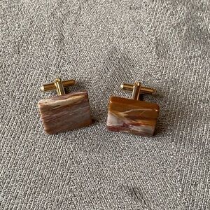Vintage Men's Tan Agate Gold Tone Cuff Links