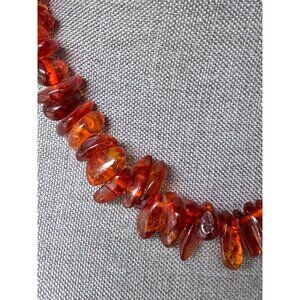 Natural Baltic Amber Beaded Necklace With Polished Nugget Stones In Warm Honey & Cognac Tones 18" Length With Barrel Clasp