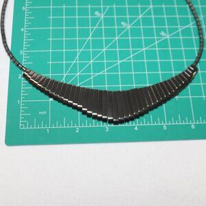 Vintage Natural Hematite Graduated Bar Necklace, 24 Inch Length