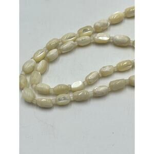 Vintage Natural Mother of Pearl Oval Bead Necklace Lustrous Shell