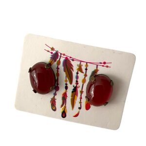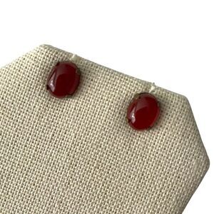 - Make a bold yet elegant statement with these vintage natural oval red stud earrings. Featuring a rich, deep red stone in an oval shape, these earrings exude timeless beauty and sophistication. Set in a classic design, these studs are perfect for adding a pop of color to your outfit while maintaining an air of refinement. Ideal for both casual and formal occasions, these earrings are a must-have addition to any vintage jewelry collection.