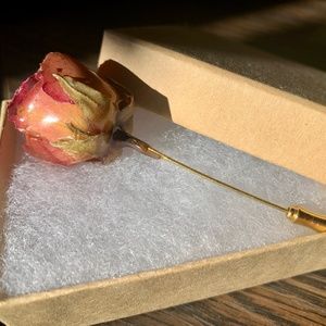 🌹Vintage Natural Preserved Rose Flower Stick Pin Brooch - Gorgeous🌹