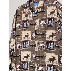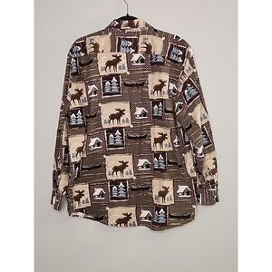Vintage Natural Reflections Moose/cabin Courduroy Button Up Womens XL Cabincore