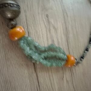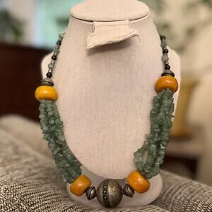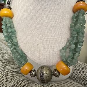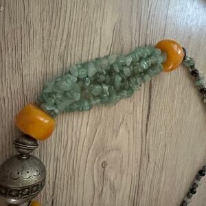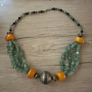 Vintage Natural Stone Copal Silver Tone Boho Tribal Beaded Statement Necklace