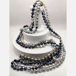 Measurements: Necklaces. #1. 40 ins #2. 17 ins. #3. 19 ins. Bracelets. #1. stretchy #2. stretchy