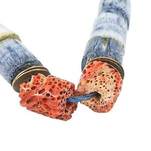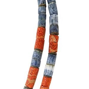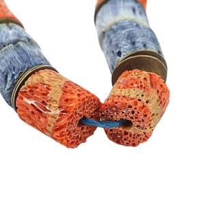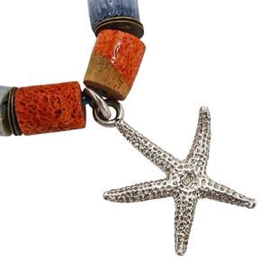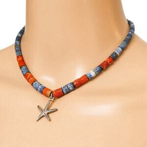 Vintage Natural Untreated Blue & Red Coral Heishi Bead Necklace Starfish Pendant