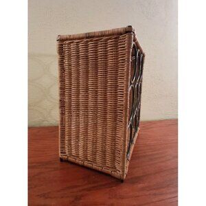 Vintage Natural Wicker Wine Rack Metal 9 Bottle Floor Counter Top Boho Rattan. Very solid. Very good condition.