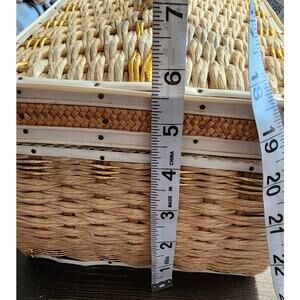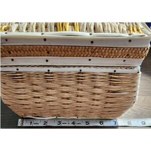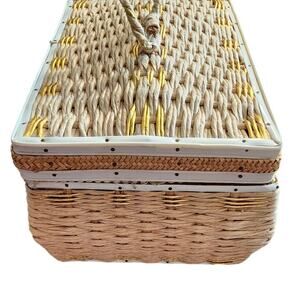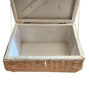 Vintage Natural Woven Fiber Woven Sewing Basket Lined Interior Box