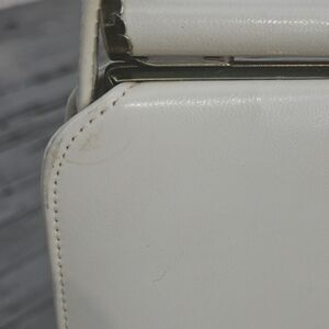 vintage handbag, Naturalizer purse, 1960s mod bag, top handle bag, retro accessories, white and tan purse, structured frame bag, mid-century fashion, collectible handbag