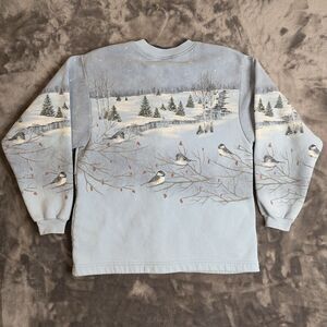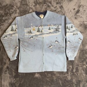 Vintage Nature All Over Print Pullover Button Up Women’s Small Long Sleeve