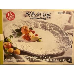 Vintage Nature Handcrafted Collection" oval platter, measuring 21" x 15" (53.3 x 38cm), which is made of ceramic and features a fruit pattern.