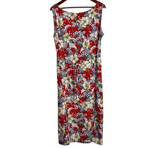 Item: Vintage Naupaka Red Hawaiian Floral Midi Dress Womens XXL Made in Hawaii Summer