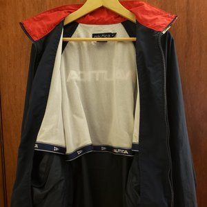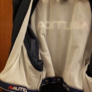 Vintage 90s Nautica Challenge XCVll windbreaker. Nautica logo on front left chest and Nautica Challenge XCVll with sailboats on the back. No holes or stains. Some of the imprint on the back has peeled off. Overall still in great condition. The measurements are approximately 29" armpit to armpit and 27" in length.