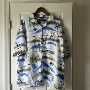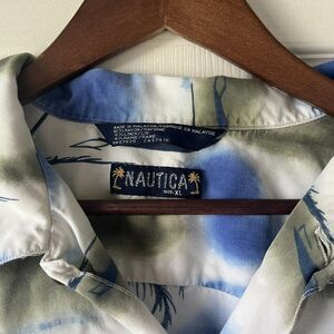 Vintage Nautica Hawaiian Rayon Button-Down | Tropical Palm Trees | XL
