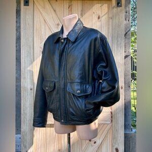 Vintage Nautica Mens Black Genuine Leather Aviator Flight Bomber Jacket~44~