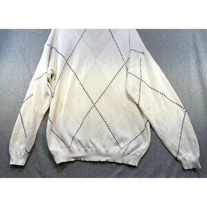 Vintage Nautica Mens Preppy Nautical Knit Sweater XXL White Argyle