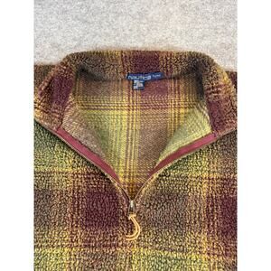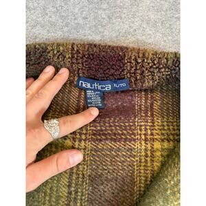 Vintage Nautica Plaid Fleece Sweater Jacket Mens XL 1/4 Zip Sherpa Retro Outdoor