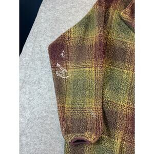 Vintage Nautica Plaid Fleece Sweater Jacket Mens XL Green Pink 1/4 Zip Pullover Sherpa Retro Outdoor