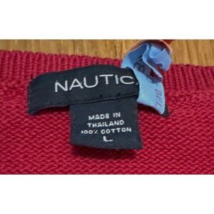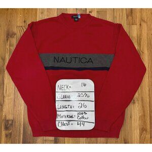 Vintage Nautica Red Logo Crewneck Sweater Cotton Knit Y2K Preppy Men’s L Retro