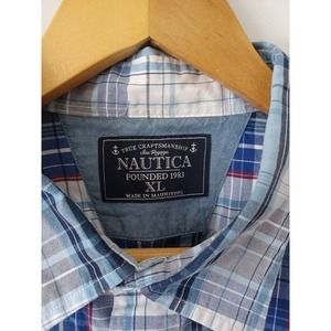 Vintage Nautica Shirt Mens Size XL Blue Plaid Button Front Half Sleeve Casual. Condition is Pre-owned. Shipped with USPS