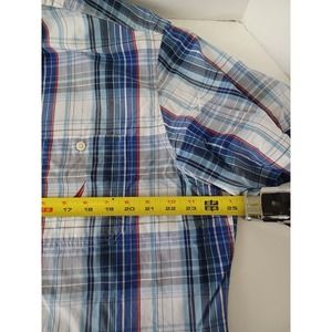 Vintage Nautica Shirt Mens Size XL Blue Plaid Button Front Half Sleeve Casual