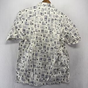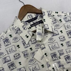 Vintage Nautica Shirt Men's medium Camo Loop Collar Stamps Geometric Coffee NEW